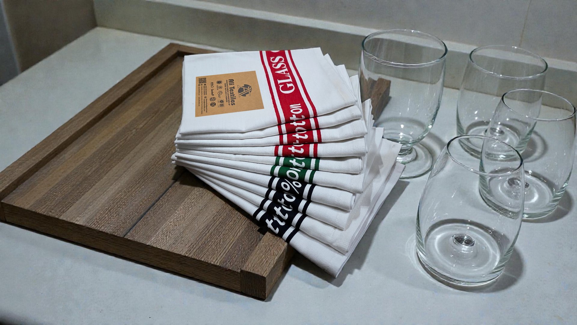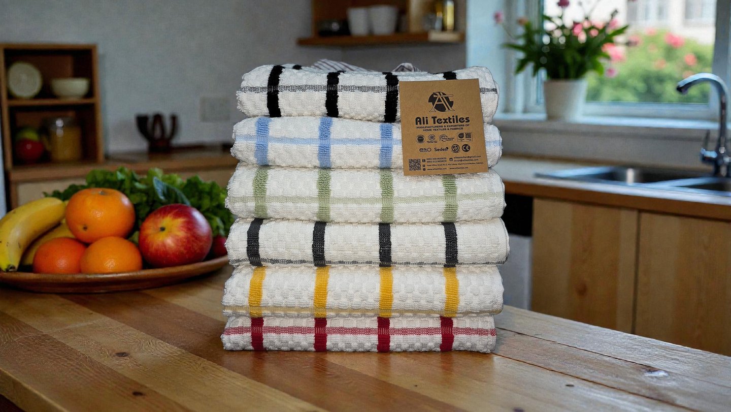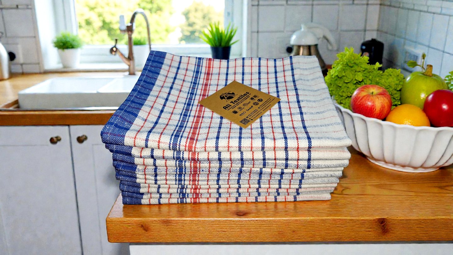 The company provides textile items such as Terry Tea Towels, Terry Bath Towels, Beach Towels, Dobby Tea Towels, Jacquard Kitchen Towels, Glass Cloths, Table Cloths, Napkins, Dish Cloths, Face Wash, Bed Sheets, Pillow Case, Duvet Covers, Bathrobes, Aprons, Oven Gloves