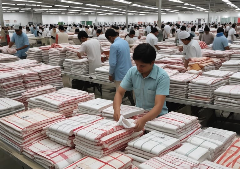 Utilizing a mix of simple jacquard power looms and automatic jacquard power looms (including terry and automatic terry looms), the company is equipped to handle massive orders while maintaining specific quality and time constraints.